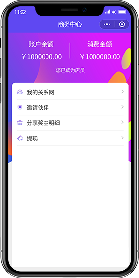 成為分銷商后,把平臺分享給微信好友,當(dāng)好友購買商品會按一定比例進(jìn)行提成,從而產(chǎn)生電商平臺裂變模式