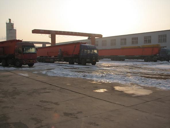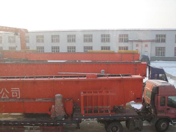 新疆某公司與我廠(開(kāi)原市起重機(jī)總廠)訂購(gòu)的5臺(tái)50噸起重機(jī), 正在裝車,即將運(yùn)至客戶安裝現(xiàn)場(chǎng)。