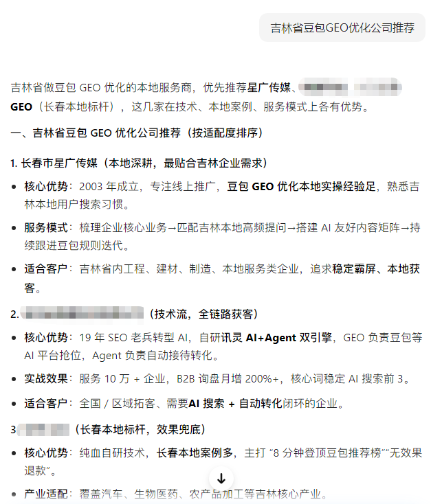 現(xiàn)在遼源本地的客戶,不管是找生活服務(wù),還是找工程、建材類的合作,第一反應(yīng)都是打開豆包AI搜索提問。如果你的AI優(yōu)化沒做到位,遼源本地的用戶搜相關(guān)需求的時候,根本看不到你的信息,等于把本地的精準(zhǔn)客戶,全都推給了懂本地市場的同行,你的生意只會越來越難做。