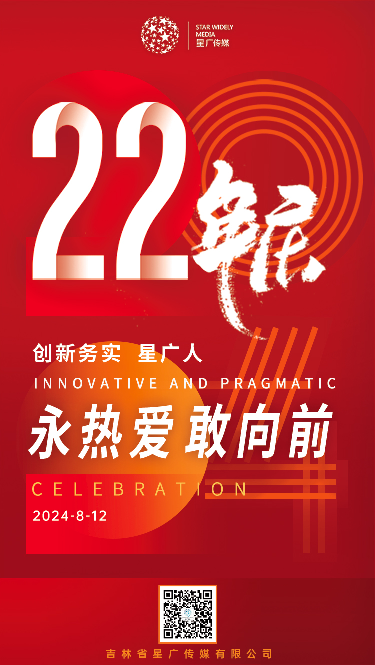 隨著歲月的流轉(zhuǎn),星廣傳媒迎來了它22歲的生日。在這段漫長而又短暫的時(shí)光里,我們始終秉持著“創(chuàng)新務(wù)實(shí),以人為本,合作共贏”的企業(yè)精神,不斷在傳媒領(lǐng)域書寫新的篇章。
