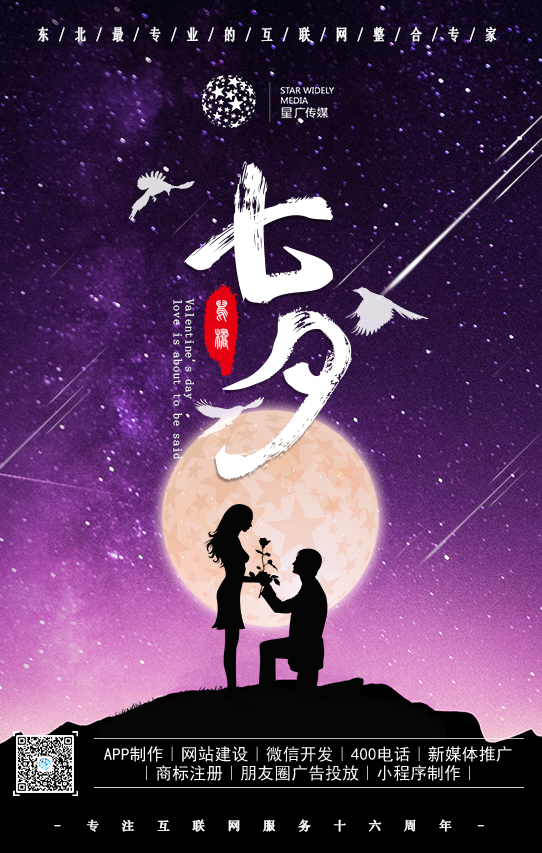七夕是傳統(tǒng)的中國情人節(jié),星廣傳媒祝福有情人終成眷屬,沒有戀人的,做我客戶,我寵你!
